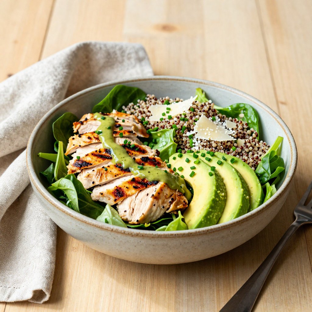 - Add the Toppings: Top with crispy quinoa, sliced chicken, and grated Parmesan cheese. The crispy quinoa adds a delightful crunch, while the Parmesan provides a savory note.