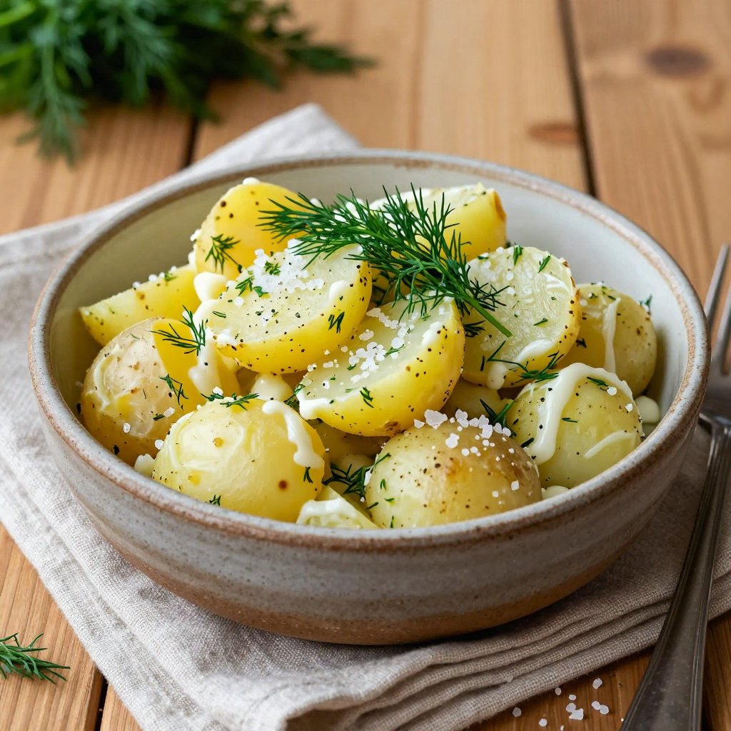 This classic potato salad recipe is easy to make and doesn't include eggs. It's perfect for potlucks, barbecues, or a simple side dish.
